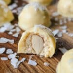 Store the coconut balls in an airtight container in the refrigerator for up to 5 days. They can also be frozen for up to 1 month. To serve after freezing, thaw in the refrigerator and allow them to come to room temperature if desired. Reheat is not recommended due to the white chocolate coating.