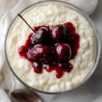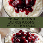 This creamy Coconut Milk Rice Pudding with Tart Cherry Sauce is a comforting and dairy-free dessert. Made with arborio rice simmered in coconut and almond milk, it’s sweetened lightly and scented with vanilla. Topped with a vibrant, homemade tart cherry sauce, this recipe delivers a perfect balance of sweetness and tanginess, ideal for a delightful treat any time of the year.