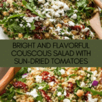A vibrant and refreshing Couscous Salad with sun-dried tomatoes, feta cheese, fresh herbs, and chickpeas, dressed with lemon juice and olive oil from the sun-dried tomatoes. This easy-to-make salad is perfect as a light meal or a flavorful side dish.