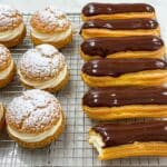 Keywords: cream puffs, éclairs, choux pastry, French dessert, pastry cream, whipped cream filling, chocolate icing