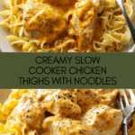 This comforting Creamy Chicken Thighs & Noodles recipe features tender, flavorful chicken thighs slow-cooked in a rich mixture of cream of mushroom and cream of chicken soups combined with sour cream and spices. Served over hot, wide egg noodles, it’s a hearty and satisfying meal perfect for cozy family dinners.