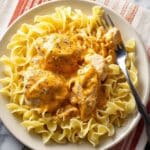 While the chicken and sauce freeze well, noodles tend to become mushy after freezing and thawing. It’s best to freeze the chicken mixture alone and cook fresh noodles when ready to serve.