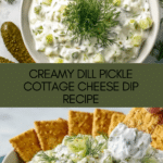Keywords: Creamy dip, dill pickle dip, cottage cheese dip, appetizer, snack, party dip, no cook dip, healthy dip