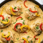 Keywords: creamy chicken, pepperoncini chicken, skillet chicken recipe, Italian chicken, creamy sauce chicken, easy dinner, one pan chicken meal