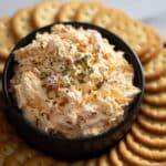 Classic Southern Pimento Cheese is a creamy, cheesy spread made with cream cheese, cheddar, Monterey Jack, mayonnaise, and diced pimentos. Perfect as a dip for chips and veggies or as a flavorful sandwich filling, this easy-to-make recipe blends sharp and mild cheeses with a hint of garlic and parsley for garnish.