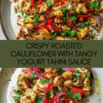 Keywords: Crispy Cauliflower, roasted cauliflower, yogurt tahini sauce, vegetarian side dish, Mediterranean vegetables, healthy snack, oven-roasted cauliflower, air fryer cauliflower