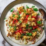 Crispy Cauliflower is a flavorful, oven-roasted or air-fried vegetable dish seasoned with smoked paprika, cumin, and garlic, served with a creamy yogurt tahini sauce and vibrant garnishes. It delivers a perfect balance of crunch, spice, and creaminess, ideal as a snack, appetizer, or side dish.