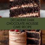 This Dark Chocolate Mousse Cake is a decadent layered dessert featuring moist, rich chocolate cake layers paired with luscious chocolate mousse and finished with a smooth chocolate ganache. Perfect for chocolate lovers, this cake combines a tender crumb, creamy mousse, and glossy ganache for a truly indulgent treat.