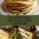 The Dubai Chocolate Crepe Cake is a decadent, layered dessert that combines delicate crepes with rich chocolate ganache and a nutty pistachio kataifi filling. With its impressive appearance and complex flavors, it’s perfect for special occasions or treating yourself to something extraordinary.