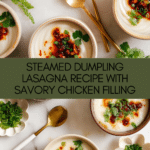 This Dumpling Lasagna is an inventive twist combining the flavors of traditional Chinese dumplings with the layered appeal of lasagna. Using chicken filling and delicate dumpling wrappers, it’s a comforting dish perfect for sharing.