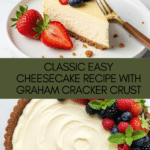 This easy cheesecake recipe features a buttery graham cracker crust and a smooth, creamy cream cheese filling, baked to perfection for a classic dessert that’s simple to prepare and irresistibly delicious.