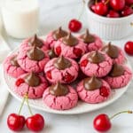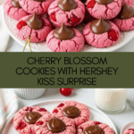 Delightfully soft and sweet cherry blossom cookies featuring a fragrant blend of maraschino cherry juice and almond extract, studded with chopped cherries and topped with a classic Hershey kiss. These easy-to-make cookies offer a perfect balance of buttery richness and fruity flavor, ideal for any occasion or festive celebration.
