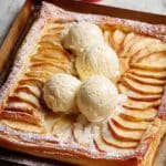 Keywords: French apple tart, tarte fine aux pommes, easy apple tart, puff pastry apple tart, apple dessert, classic French dessert, vanilla ice cream pairing