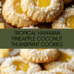 Delight in these Easy Hawaiian Pineapple Coconut Thumbprint Cookies, featuring a buttery soft cookie base with a sweet pineapple jam center and a crunchy toasted coconut topping. Perfectly balanced and simple to make, these cookies bring a tropical twist to your baking repertoire.