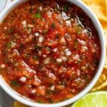 This easy salsa recipe is a fresh and flavorful addition to any meal. Made with fire-roasted tomatoes, fresh herbs, and a hint of lime, it’s perfect for dipping chips or adding a zesty kick to your dishes.