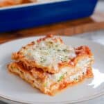Store leftover lasagna covered in the refrigerator for up to 4 days. Reheat individual slices in the microwave or oven until warmed through. You can also freeze the baked lasagna for up to 3 months—thaw overnight in the fridge before reheating.