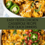 Keywords: Fiesta Chicken Casserole, Mexican casserole, chicken pasta bake, taco seasoned casserole, easy dinner casserole