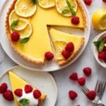 This classic French Lemon Tart, or Tarte au Citron, features a tender sweet tart crust filled with a rich, tangy lemon custard. The filling is cooked gently on the stovetop to a luscious thickness before being baked briefly to set. Served chilled and optionally garnished with whipped cream, lemon slices, or fresh berries, it’s the perfect balance of bright citrus flavor and buttery richness for an elegant dessert.