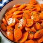 Delicious glazed carrots cooked on the stovetop with a buttery brown sugar sauce, providing a sweet and savory side dish that’s perfect for any meal.