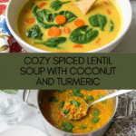 Keywords: spiced lentil soup, turmeric soup, coconut lentil soup, vegan soup, healthy soup, red lentils, Middle Eastern soup