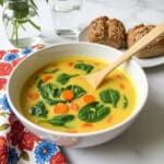 - For a smoother texture, you can blend part of the soup with an immersion blender before adding the spinach.