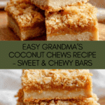 Grandma’s Coconut Chews are a delightful, chewy dessert bar featuring a buttery crust topped with a rich, coconut-infused filling. Simple to make and perfect for coconut lovers, these bars pair a soft, sweet base with a moist, flavorful coconut topping, creating a nostalgic treat enjoyed by all ages.