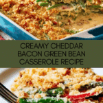 Keywords: green bean casserole, green beans, cheesy casserole, holiday side dish, baked green beans, bacon green beans, comfort food