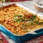 Keywords: green bean casserole, green beans, cheesy casserole, holiday side dish, baked green beans, bacon green beans, comfort food