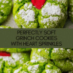 These festive Grinch Cookies are a fun and easy treat perfect for holiday celebrations. Bright green, soft, and topped with red heart sprinkles, they bring a playful twist to your cookie platter. Ready in under 30 minutes, they’re great for both kids and adults alike.