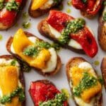 Halloumi-Stuffed Sweet Peppers are a vibrant and flavorful appetizer or snack featuring mini sweet peppers filled with savory halloumi cheese, fresh herbs, and garlic. Roasted to bring out the natural sweetness of the peppers and melted texture of the cheese, this dish is perfect served on crostini or in lettuce cups with optional pesto for an extra burst of flavor.