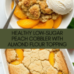 Keywords: Peach Cobbler, Healthy Dessert, Gluten Free Cobbler, Low Sugar Peach Cobbler, Almond Flour Dessert, Monk Fruit Sweetened