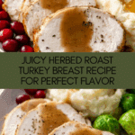 This Herbed Roast Turkey Breast recipe features a succulent boneless turkey breast seasoned with a flavorful blend of fresh herbs and slow-roasted to perfection. Perfect for a simple yet elegant meal, this turkey breast is juicy, tender, and infused with aromatic notes from rosemary, sage, thyme, and parsley. It’s an excellent main dish for holidays or special occasions that doesn’t require a whole bird.