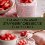 Keywords: strawberry chia pudding, cheesecake chia pudding, healthy pudding recipe, chia seed dessert, no bake dessert, strawberry dessert, dairy pudding