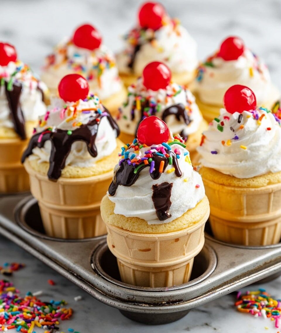 Delightfully fun and easy-to-make Ice Cream Cone Cupcakes are a playful twist on classic cupcakes, baked directly in ice cream cones and topped with fluffy whipped cream or frosting and colorful sprinkles. Perfect for parties or a whimsical dessert option that kids and adults will love.