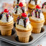 Ice Cream Cone Cupcakes are a fun and creative twist on traditional cupcakes. Baked inside ice cream cones and topped with fluffy frosting and sprinkles, they make a delightful treat for parties or anytime you want a whimsical dessert.