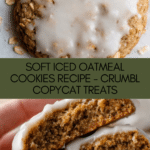 Keywords: iced oatmeal cookies, Crumbl copycat, soft oatmeal cookies, vanilla glaze cookies, easy cookie recipe, homemade cookies