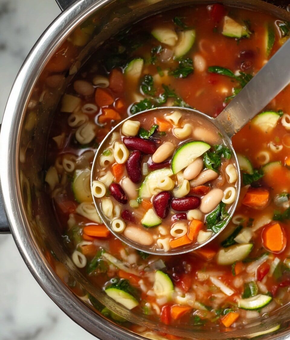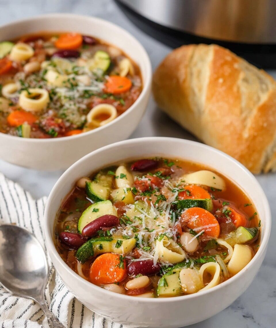 Keywords: Instant Pot minestrone soup, easy minestrone recipe, pressure cooker minestrone, Italian vegetable soup, hearty bean soup, weeknight dinner soup