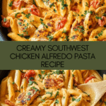 Keywords: Southwest Chicken Alfredo, creamy chicken pasta, spicy chicken Alfredo, family dinner recipe, penne pasta, cheddar Alfredo sauce