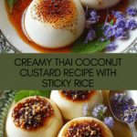 This Irresistible Thai Coconut Custard is a creamy, aromatic dessert made with rich coconut milk, eggs, and palm sugar, gently baked to silky perfection. Often enjoyed with sticky rice, this traditional treat offers a subtle balance of sweetness and coconut flavor enhanced by pandan leaves and vanilla, making it a delightful homemade indulgence.