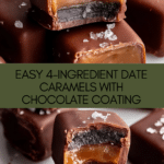 Keywords: date caramels, healthy dessert, easy caramel recipe, 4 ingredients, vegan caramel, no refined sugar, homemade chocolate caramels