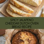 This Jalapeno Cheddar Dutch Oven Bread is a spicy, cheesy twist on classic homemade bread. Perfectly crusty on the outside and soft inside, it’s a flavorful loaf that pairs wonderfully with soups, sandwiches, or just on its own.