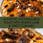 Keywords: Kabuli Pulao, Afghan rice, lamb pulao, basmati rice, Afghan cuisine, aromatic rice dish, caramelized carrots, roasted almonds