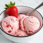 This Keto Strawberry Ice Cream recipe is a creamy, low-carb frozen treat made with heavy cream, butter, and sweetened naturally with monk fruit and allulose blend. Fresh strawberries and strawberry jam add vibrant flavor and texture, perfect for a delicious ketogenic dessert without the guilt.