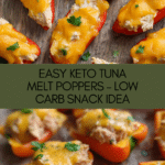 These Keto Tuna Melt Poppers are a low-carb, flavorful appetizer or snack featuring mini bell peppers stuffed with a savory tuna mixture and topped with melted cheddar cheese. Perfect for a quick keto-friendly bite that packs a punch of protein and taste.