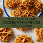 These Latke Cookies combine the nostalgic flavors of classic latkes with a sweet twist, featuring crispy potato sticks baked into buttery cookies topped with a rich apple caramel sauce. Perfect for holiday treats or a unique dessert, they offer a delightful balance of crunchy texture and luscious caramel flavor.