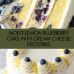 Keywords: Lemon Blueberry Cake, Layer Cake, Cream Cheese Frosting, Spring Dessert, Summer Cake, Homemade Cake