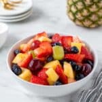 A refreshing and vibrant fruit salad featuring pineapple, strawberries, blueberries, and grapes tossed in a zesty honey lime dressing. Perfect as a healthy snack or a colorful side dish for any occasion.