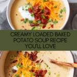 Keywords: loaded baked potato soup, creamy potato soup, bacon potato soup, comforting soup recipe, cheese potato soup