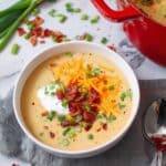 Keywords: loaded baked potato soup, creamy potato soup, bacon potato soup, comforting soup recipe, cheese potato soup