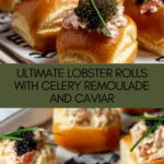 This fresh and indulgent Lobster Rolls recipe features tender lobster meat gently poached in clarified butter and tossed with a bright, creamy celery remoulade made with Japanese mayo, creme fraîche, and fresh herbs. Served on buttery toasted brioche slider buns and optionally topped with luxurious Kaluga Imperia caviar and chive sticks, these rolls make for a perfect elegant appetizer or special meal.